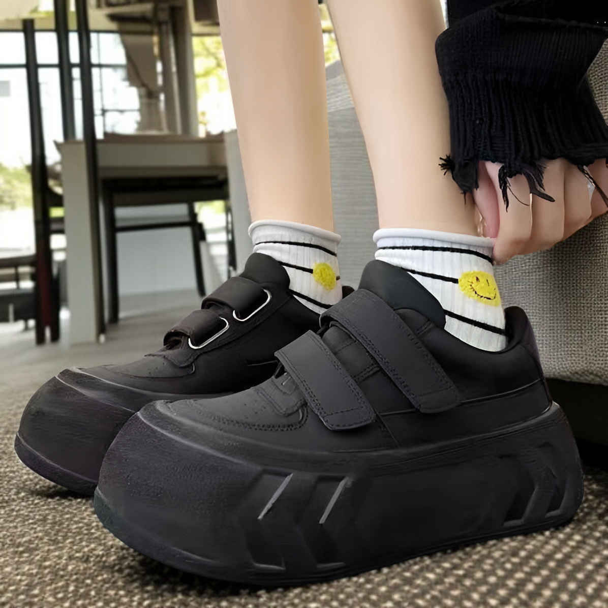 ● 厚底設計により脚長効果抜群。スポーツカジュアルな雰囲気で、歩きやすさと美脚見えを両立した一足です。