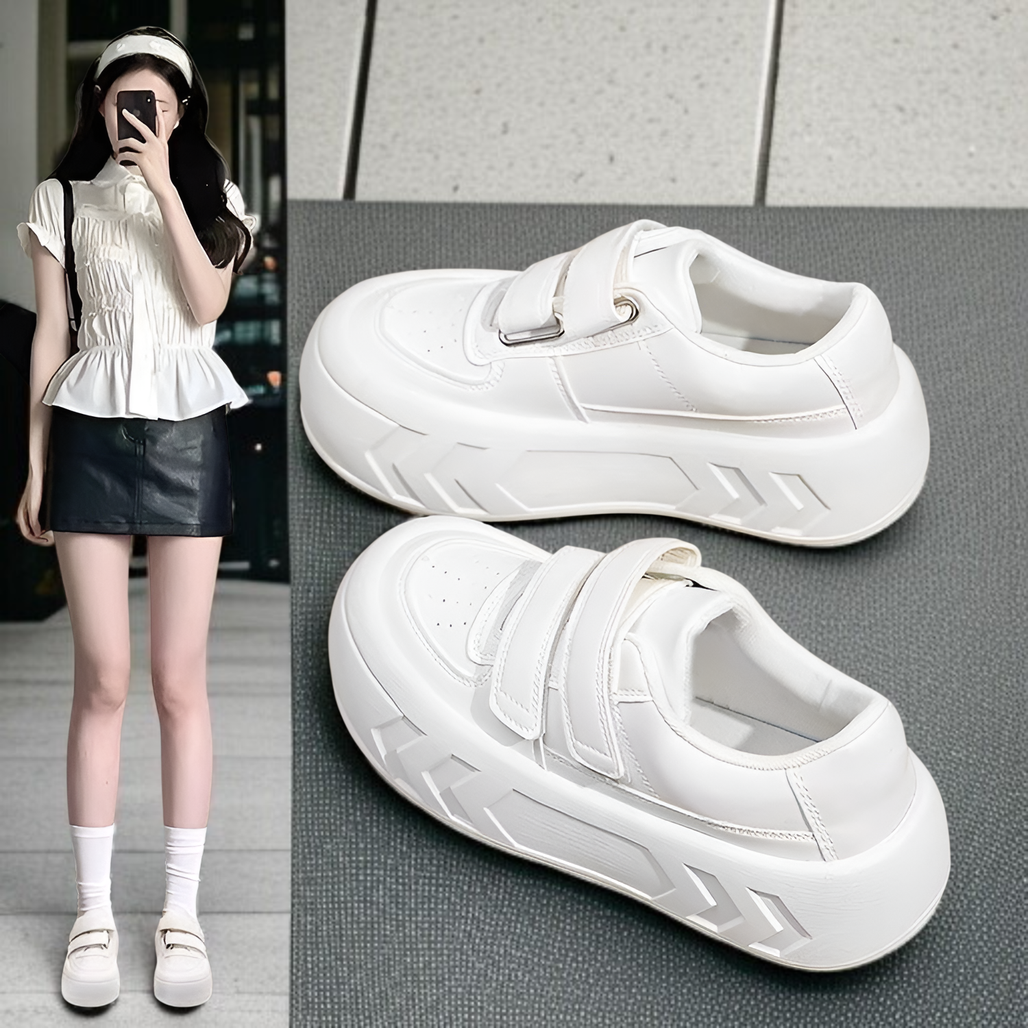 ● 春と秋の新作で、トレンド感あふれるデザインが魅力的なホワイトスニーカー。どんなコーデにも合わせやすく、毎日のスタイリングを格上げします。